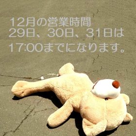 12月22日(月曜)はお休みです。 29日、30日、31日は17:00までの営業になります。 よろしくお願いいたします。
